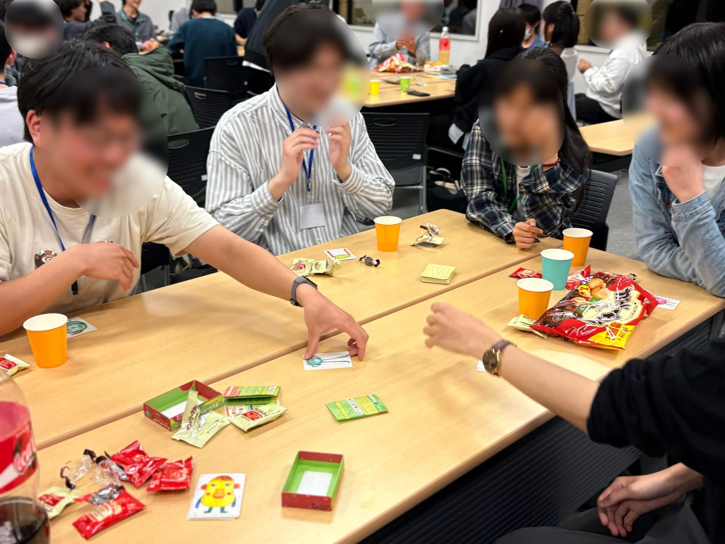 本活動では、お菓子やボードゲームを囲みながら、メンバー同士の交流を深めました。新年度最初の対面活動ということで、50名以上の多くの皆様にご参加いただきました。
